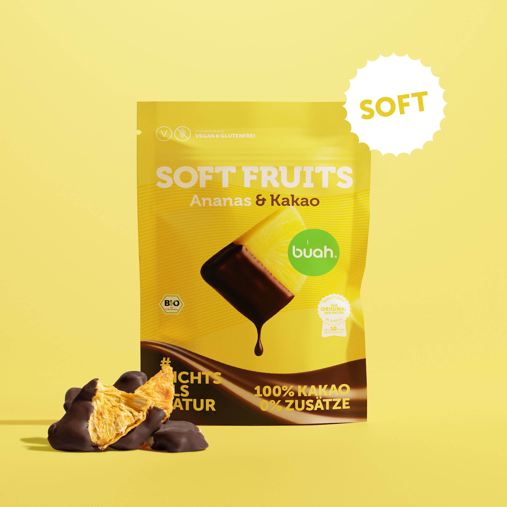 Buah's organic soft fruits are more than just dried fruit. They're an invitation to rediscover fruit: soft instead of crunchy, pure instead of overloaded, honest instead of artificial. If you're looking for soft fruit snacks that combine quality, taste, and naturalness, you simply have to try this fruit bag.